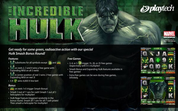 For further information on this great Marvel Slot it is worth also reading this appraisal of The Incredible Hulk Slot which is on the portal Gambling Advertisements.