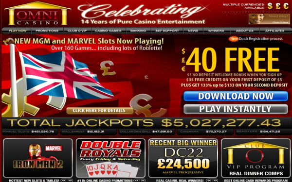 Omni Casino is licenced in Curacao and is powered by the award-winning Playtech software. Players can choose from the instant play Flash version (Windows, Mac or Linux) or download the software directly (Windows only). The casino welcomes players from the UK, Europe and the world over, but unfortunately US players are excluded.